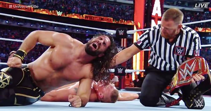 Since then, this rivalry has escalated to another level. Lesnar has completely destroyed The Man over the past couple of weeks. Two weeks ago on RAW, he brutalized Rollins throughout the entire arena to break his ribs, which also led to internal bleeding. This week, Rollins suffered the same fate, but in a lighter way.