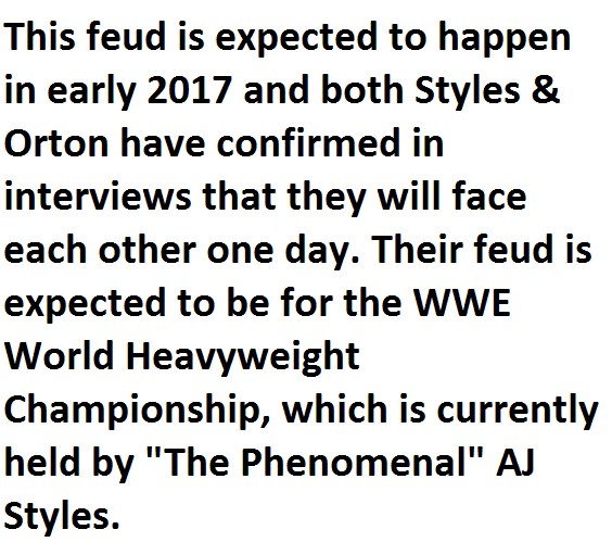 News & Stories8 Big Feuds That WWE Is Looking To Do In 2017 By AG Posted on October 16, 2016 Share Tweet Share Share Email Comments2. AJ Styles vs. Randy Orton – WWE World Championship Match 1 2 3 4 5 6 7 8 Continue reading.. Next Story >