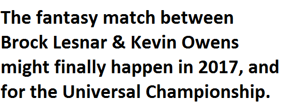 News & Stories8 Big Feuds That WWE Is Looking To Do In 2017 By AG Posted on October 16, 2016 Share Tweet Share Share Email Comments1. Kevin Owens vs. Brock Lesnar – WWE Universal Championship MatchAlso Read: Record Setting WWE Title Reign Cancelled, 3 WrestleMania Matches Cancelled Due To Injury – Click Here. [tps_footer] [/tps_footer] 1 2 3 4 5 6 7 8 Next Story >
