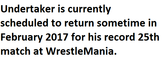 News & Stories8 Names That Are Expected To Return To WWE Programming In 2017 By AG Posted on October 13, 2016 Share Tweet Share Share Email Comments3. The Undertaker 1 2 3 4 5 6 7 8 Continue reading.. Next Story >