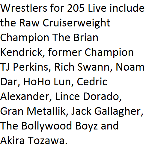 As we noted yesterday, WWE announced a new show for Tuesday nights named “205 Live” (starts on November 29th at 10pm EST following SmackDown Live). The show will feature Raw Cruiserweights.