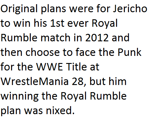 News & StoriesPlans That Got Cancelled In WWF/WWE History – Episode 1 By AG Posted on October 24, 2016 Share Tweet Share Share Email Comments5. Chris Jericho Winning The 2012 Royal Rumble MatchChris Jericho returned to WWE in 2012 and the plan was for him to face CM Punk for the WWE Championship at WrestleMania 28 (in a match to find out who the “Best in the World” really is). 1 2 3 4 5 6 7 8 Continue reading.. Next Story >