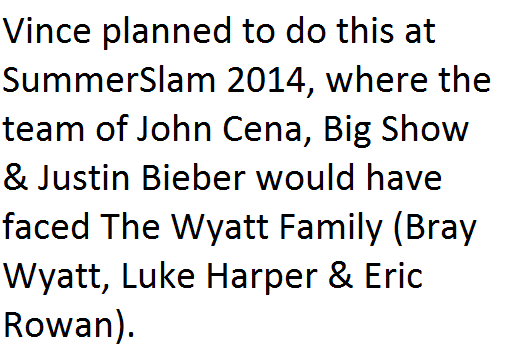 In 2014, Singer & Song Writer Justin Bieber wanted to wrestle for the WWE, and Vince McMahon thought about going with the idea of Bieber wrestling (as it would have resulted in Bieber’s fans tuning in to see him in a WWE ring).