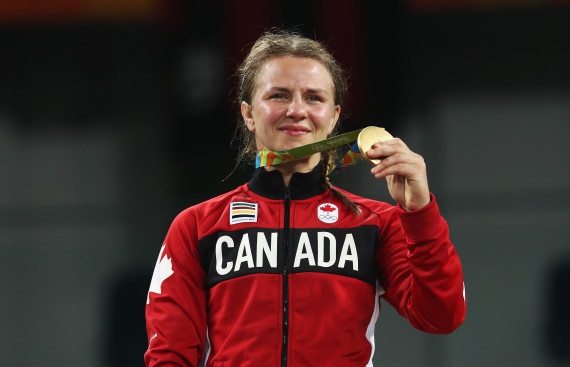 She went on to defeat Guzel Manyurova for the gold medal in women’s 75 kg freestyle wrestling. Below is a pic of her: