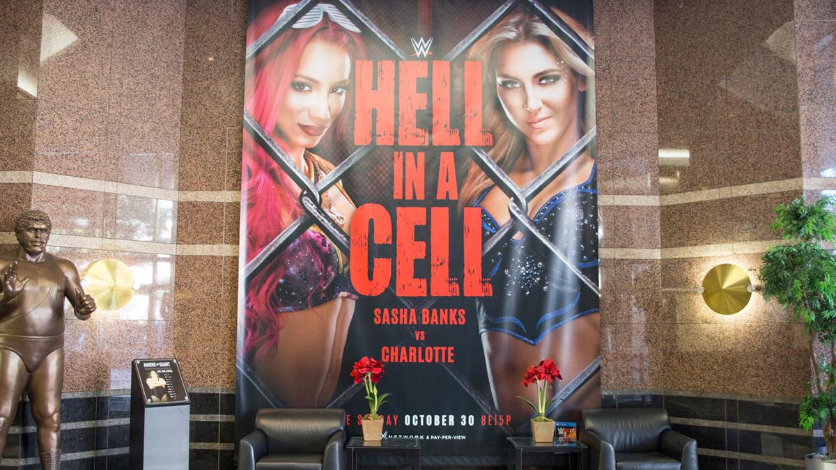 At WWE Hell in a Cell Raw Women’s Champion Sasha Banks and Charlotte will make history by being the first two women to ever compete inside the dangerous structure. However, the two Superstars have already carved out a bit of distinction as they are exclusively featured on the event’s poster.