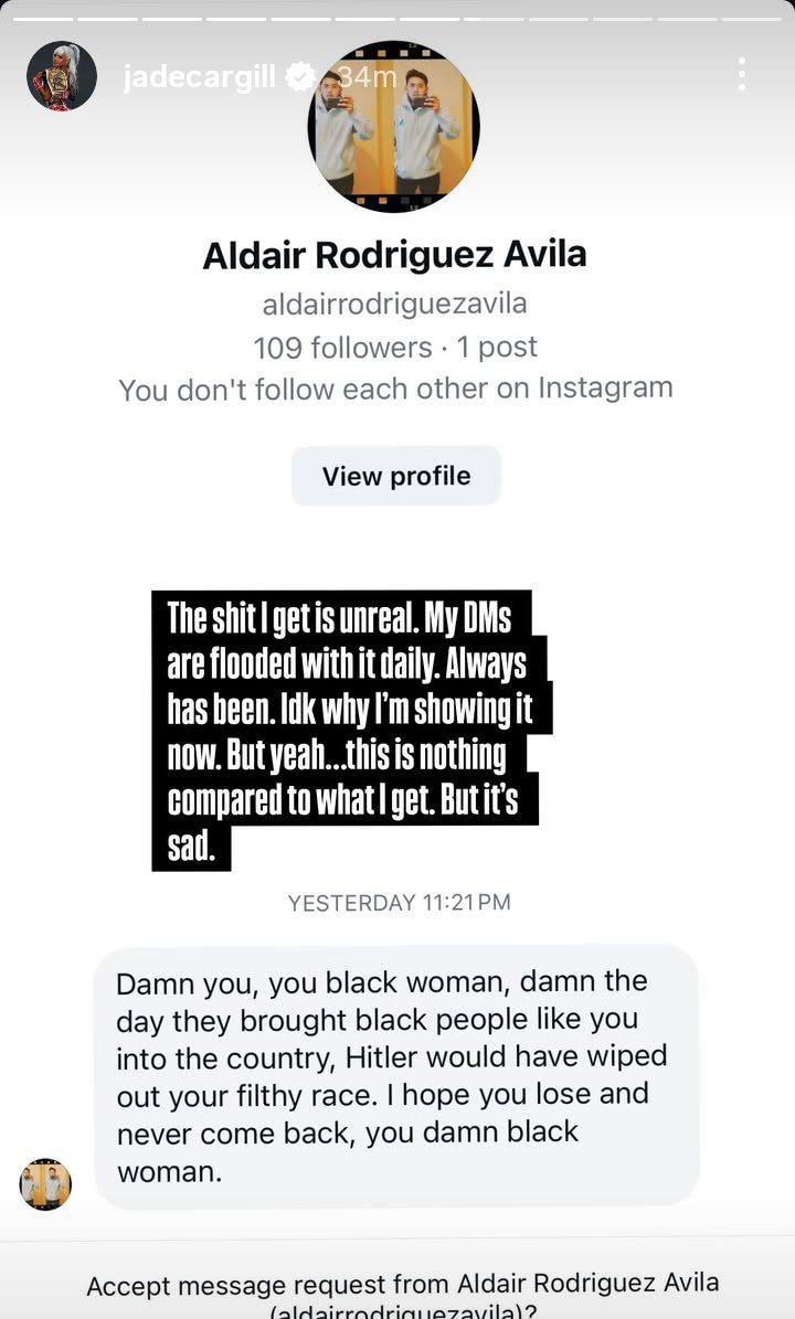 “The sh*t I get is unreal. My DMs are flooded with it daily. Always has been. Idk why I’m showing it now. But yeah…this is nothing compared to what I get. But it’s sad.