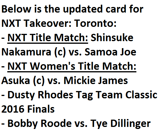 The following update contains spoilers regarding next month’s NXT Takeover: Toronto. Click on “Read More” if you want to read it or else go to the next page for more updates.
