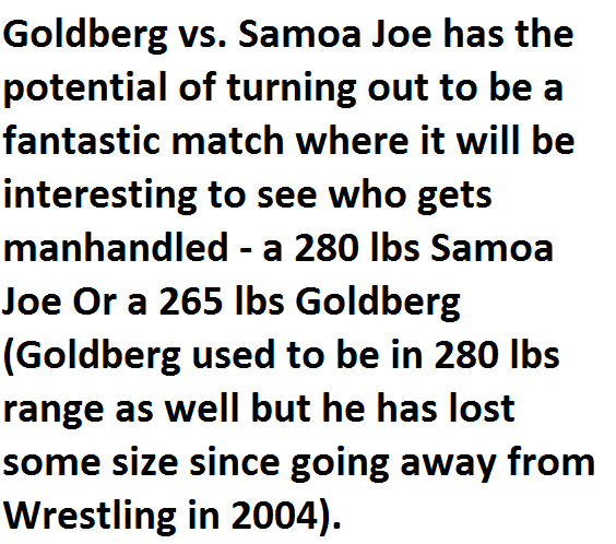 News & StoriesPossible Opponents For Goldberg If He Returns For More Than One Match By AG Posted on October 17, 2016 Share Tweet Share Share Email Comments4. Samoa Joe 1 2 3 4 5 6 7 8 Continue reading.. Next Story >