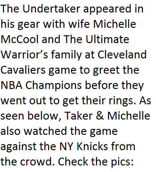 #CelebritySelfie: The Undertaker and his wife Michelle McCool enjoying the Cavs win over the #Knicks. #NBA #DefendTheLand pic.twitter.com/rVI6jDptvM
