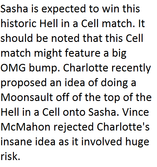 News & StoriesThings That Are Expected To Happen Tonight At Hell In A Cell 2016 By AG Posted on October 30, 2016 Share Tweet Share Share Email Comments2. Sasha Banks vs. Charlotte“The Boss” Sasha Banks will defend her Raw Women’s Championship against Charlotte Flair in the 1st ever Women’s Hell in a Cell match. 1 2 3 4 5 6 7 8 Continue reading.. Next Story >