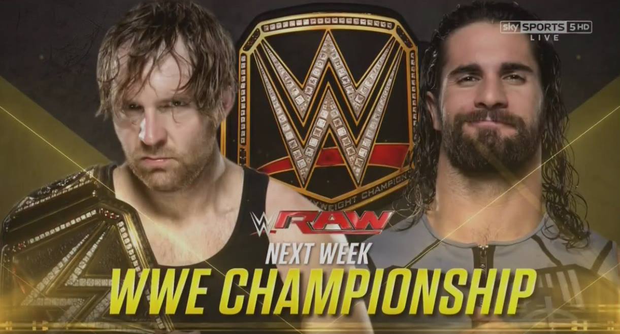 In the main event of tonight’s Raw, Dean Ambrose will defend the WWE Championship against Seth Rollins. Below is what WWE posted regarding the match: